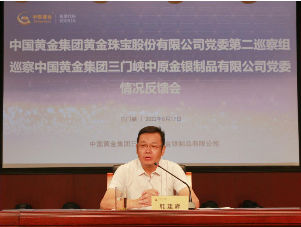根據(jù)中金珠寶黨委巡察工作統(tǒng)一安排,8月17日,中金珠寶黨委第二巡察組(以下簡稱巡察組)巡察中國黃金集團(tuán)三門峽中原金銀制品有限公司(以下簡稱三門峽公司)黨委情況反饋會召開。中金珠寶黨委委員、紀(jì)委書記、黨委巡察工作領(lǐng)導(dǎo)小組副組長韓建輝出席會議并講話。中金珠寶黨委第二巡察組組長胡金紅就巡察情況進(jìn)行現(xiàn)場反饋,三門峽公司黨委書記、董事長陳志杰作表態(tài)發(fā)言。中金珠寶黨委巡察辦公室相關(guān)人員,三門峽公司領(lǐng)導(dǎo)班...