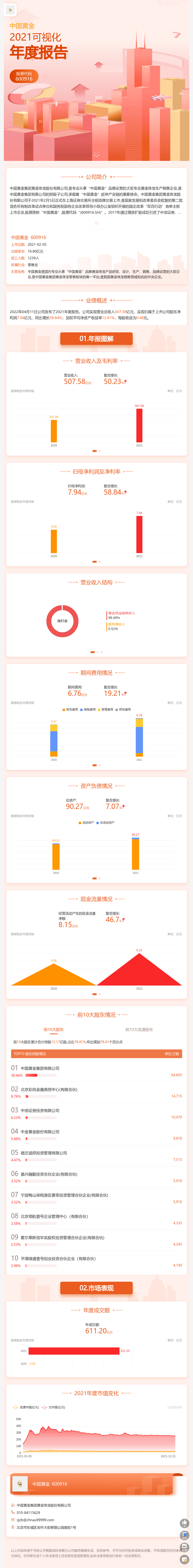 中國黃金集團黃金珠寶股份有限公司(簡稱“中國黃金”600916.SH)于今日發(fā)布2021年年度報告,業(yè)績十分亮眼。