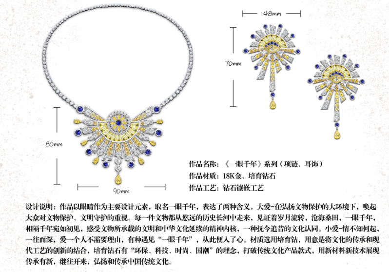 9月19日,2023培育鉆石設(shè)計大賽總決賽在鄭州舉行,在眾多參賽作品中,中金珠寶產(chǎn)品交易部(研發(fā)設(shè)計中心)設(shè)計師李佳音參賽作品“一眼千年”、設(shè)計師陳道熙參賽作品“同心繪夢”在本次大賽中分別獲得了創(chuàng)意組、專業(yè)組二等獎。